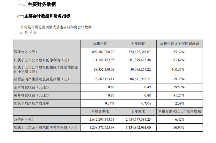 龙商网消息:4月20日,盐津铺子发布公告,一季度公司营业收入8.93亿元,同比增长55.37%;归母净利润1.12亿元,同比增长81.67%;基本每股收益0.88元。