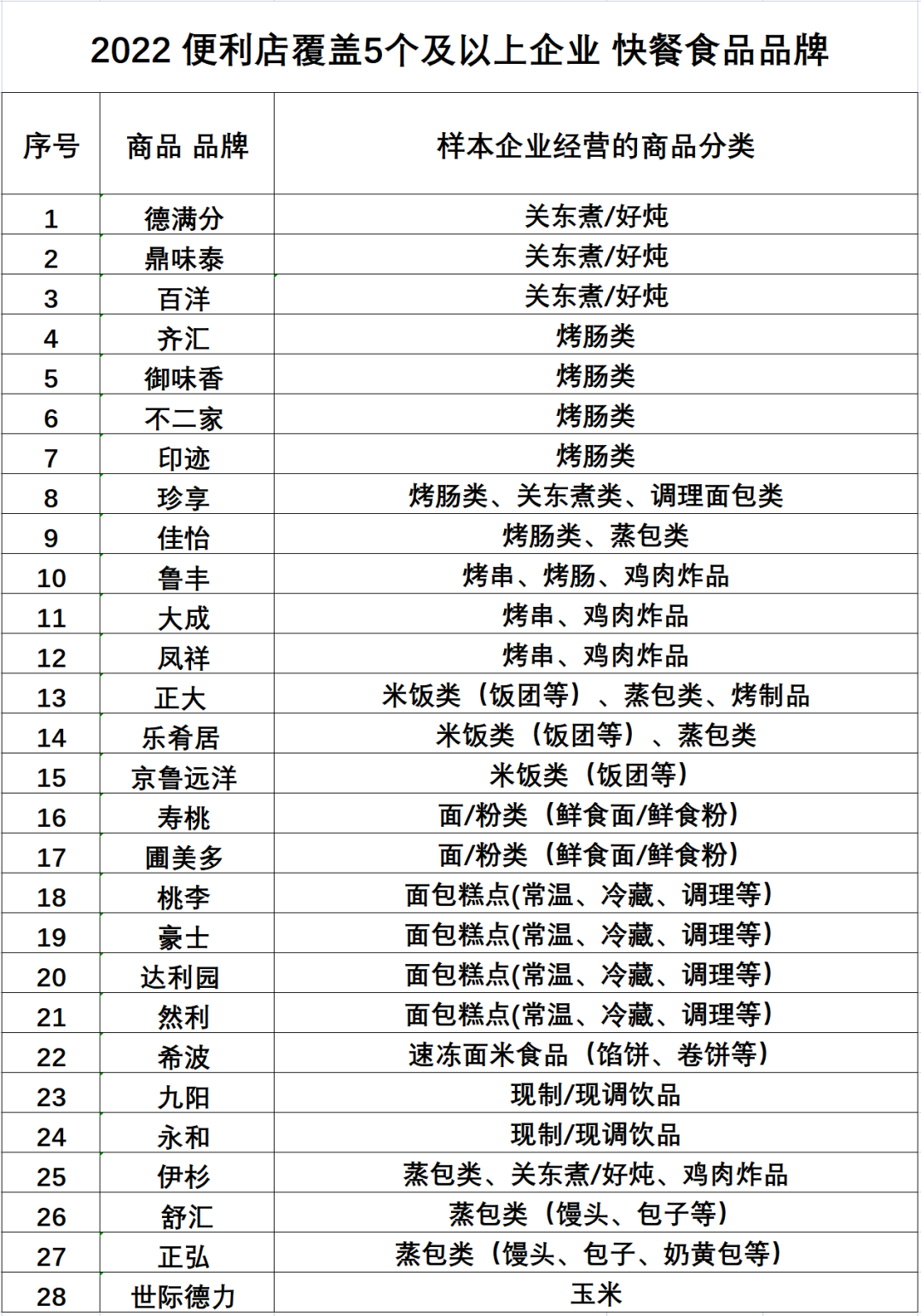 龙商网消息: 5月4日,中国连锁经营协会发布《2022年中国便利店畅销品名单》。该名单已连续发布三年,在2021年调查基础上,2022年删除了新品引进计划,增加了品类销售占比调查。数据来自51家连锁便利店企业,拥有门店7.4万家,其中47家为便利店百强企业。 香...