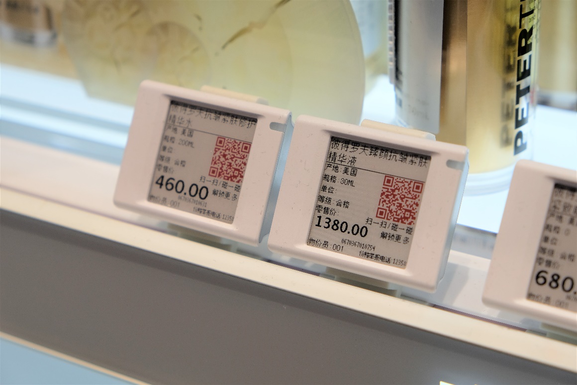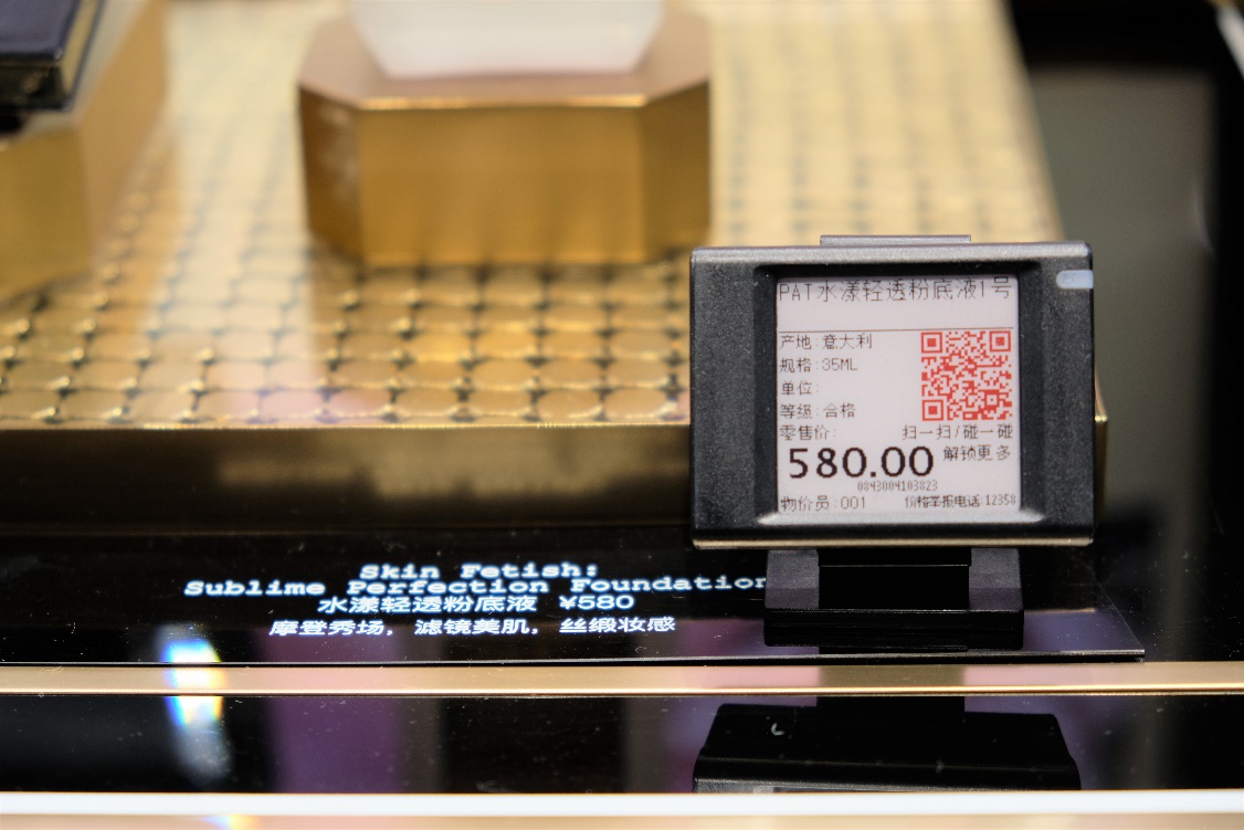 在此次新开的丝芙兰未来概念店中,全面展示了智能化、数字化的未来美妆购物体验。消费者可以通过店内的电子价签、智能试妆镜和VR虚拟试妆等方式深度了解产品。其中,丝芙兰门店应用了汉朔电子价签解决方案,帮助丝芙兰实现了商品信息的极速更新、统一下发与管理。与此同时,在丝芙兰未来概念店中,顾客可以通过将手机轻触电子价签,即可跳转丝芙兰网上商城,浏览价签对应的商品详情和真实用户反馈,包括产品名称、价格和规格、主要功效成分、产品介绍、以及消费者使用评价等。顾客也可用手机扫描电子价签屏幕上展示的二维码,进行线上商城跳转与商品浏览等。