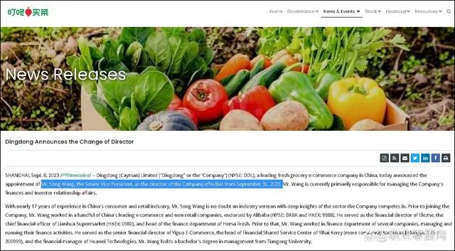 龙商网消息:叮咚买菜近日宣布任命高级副总裁王松为公司董事,自2023年9月30日起生效。王松目前主要负责管理公司的财务和投资者关系事务。据了解,王松在中国消费和零售行业拥有近17年的经验,对公司所竞争的领域有着深刻的见解。在加入叮咚买菜之前,他曾担任饿了么的财务总监,还是联华超市首席财务官,盒马鲜生财务部门负责人。与此同时,该公司还宣布,由于个人原因,公司董事兼首席战略官俞乐已提交辞呈,辞去目前的职位。俞乐的辞职将于2023年9月30日生效。她的辞职不是由于与公司或公司董事会的任何争议或分歧,也不是由于与公司的运营、政策或实践有关的任何事项。她将继续留在公司担任董事会的顾问角色。