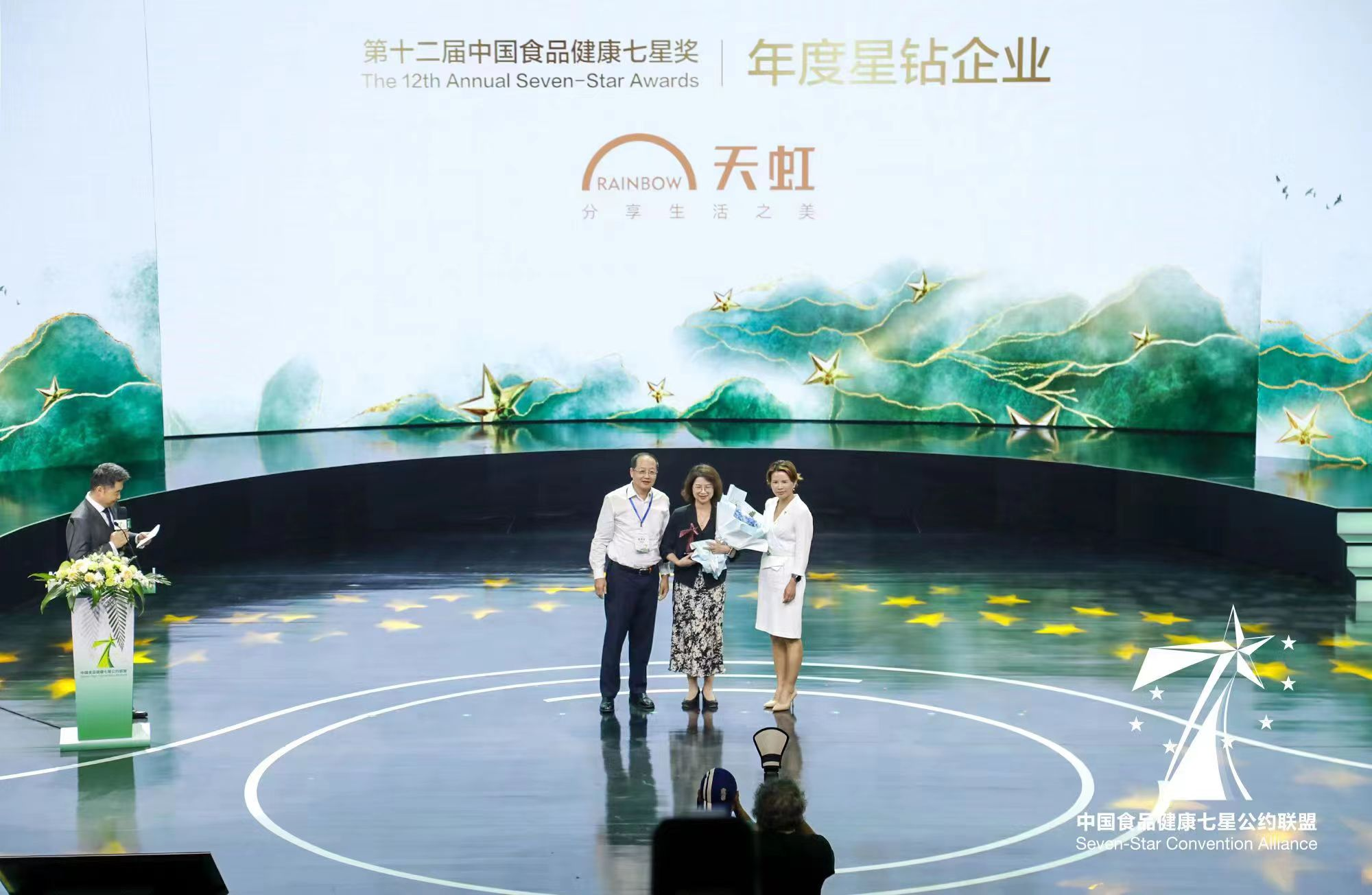 龙商网消息:11月2日,2023年第十二届“中国食品健康七星奖”(简称“七星奖”)颁奖典礼于上海成功举行。本届共有40家优秀食品制造、零售及餐饮企业脱颖而出,其中天虹数科商业股份有限公司(简称“天虹股份”)获得“年度星钻企业”的最高荣誉。