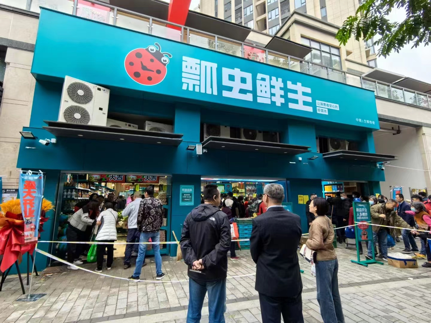 龙商网消息:生鲜传奇开出跨区发展第一店!今日(11月10日),生鲜传奇联合武汉中商共同打造的首家瓢虫鲜生社区生鲜店在武汉正式开业。