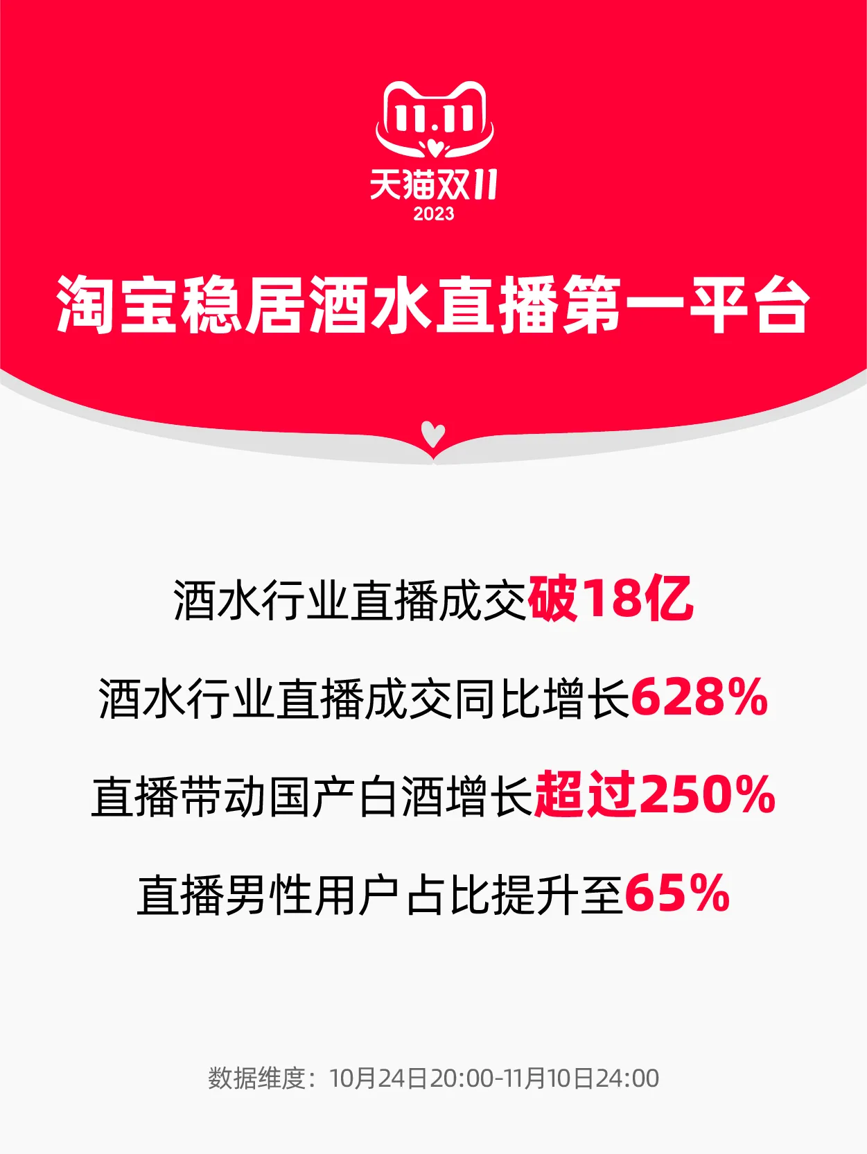 截至11月10日,天猫双11酒水行业直播成交破18亿,成交同比增长628%,带动国产白酒增长超过250%。茅台、五粮液等品牌成交破亿,郎酒、习酒等成交增速超100%。