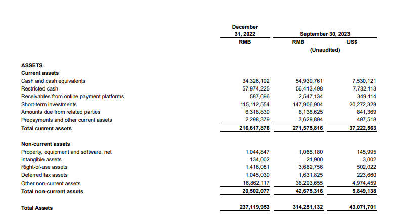 龙商网消息:11月28日,拼多多公布截至2023年9月30日的第三季度未经审计的财务业绩。本季度拼多多总收入为688.404亿元,同比增长94%。其中,拼多多在线营销服务和其他收入为396.877亿元,同比增长39%。交易服务收入为291.527亿元,同比增长315%。