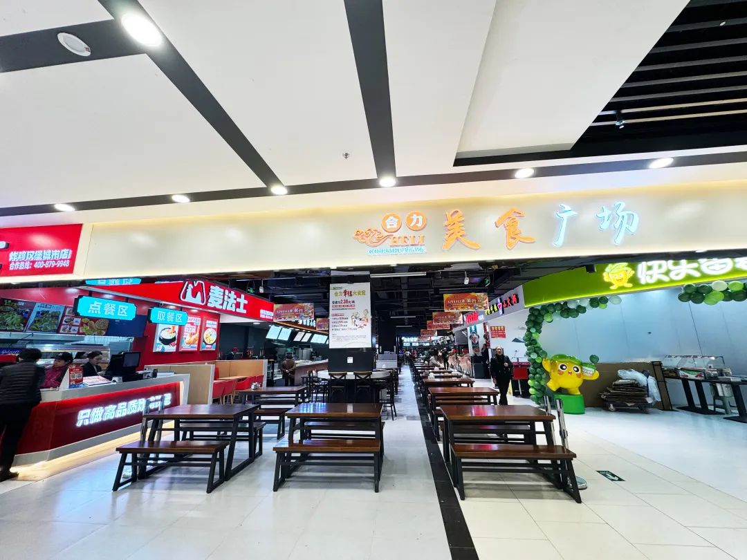 除了幸福大食堂,合力美食城还引进了北京烤鸭、酸汤砂锅粉、麻辣香锅、小火锅、小碗菜、养身煨汤、螺蛳粉、泸州火锅鸡、冒菜、铜锅洋芋饭、曾家凉粉、兴月烧烤/炸串等20多种地方特色美食和小吃,让顾客在购物的同时,也能品尝到美味的食物。此外,超市还增加了许多新的娱乐设施和服务项目,如儿童游乐区、电玩城、美容美发等,让顾客在购物的同时,也能享受到更加全面的服务,真正实现“吃、喝、玩、乐、购”一站式购物的乐趣。