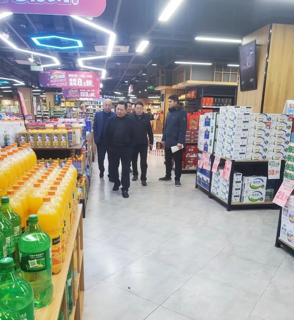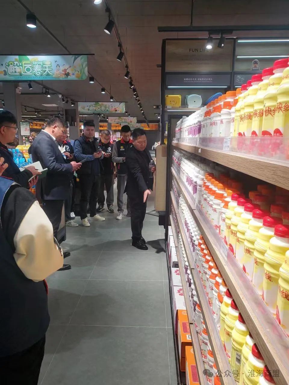 ▲3月16-17日,淮海商盟会长许治、副会长郑银良一行在扬州、盐城、宿迁等地零售市场调研。图为许治一行在高邮好享易购超市武安店、兴业店、碧桂园店、万和城店巡店指导,公司董事长翟东阳等陪同