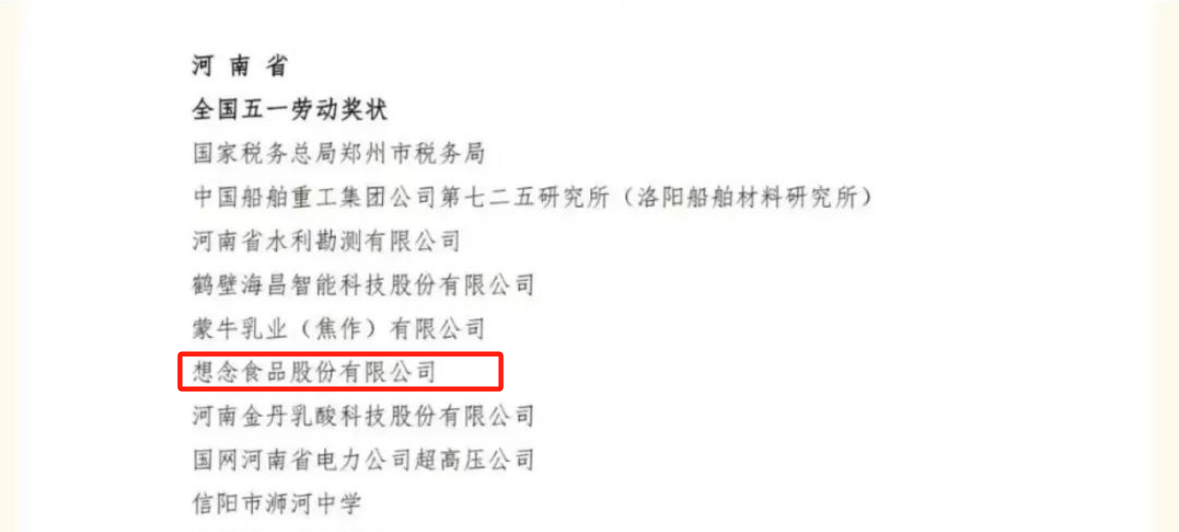 龙商网消息: 4月28日,2024年庆祝五一国际劳动节暨全国五一劳动奖和全国工人先锋号表彰大会在北京人民大会堂举行,表彰全国五一劳动奖状255个、全国五一劳动奖章1088个、全国工人先锋号1034个。其中,河南省南阳市想念食品股份有限公司荣获全国五一劳动奖状...