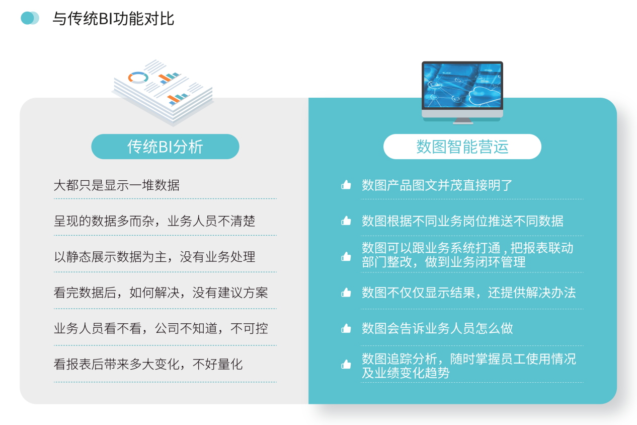 数图智能营运管理系统,是一套依托大数据技术和深度业务模型,专为连锁企业量身打造的品类诊断与营业监控系统。该系统深度整合各类业务模型,包括品类分析、门店健康状况分析和会员分析等,内置了众多专业管理逻辑和分析指标。能够自动识别营运中的问题及潜在风险,并自动生成相应的任务,推送给相关人员,助力企业达成更高的营运标准和管理水平。