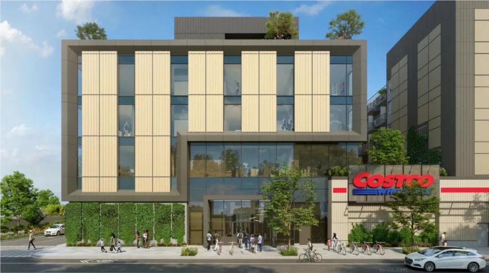 从效果图来看,该综合体不仅有Costco商店、附带的停车场,还囊括了多达800套住宅单元,内部还设有开放式庭院空间和其他配套设施。这种混合用途模式的建筑对城市而言不算新奇,但可能会对Costco的零售策略产生深远影响。