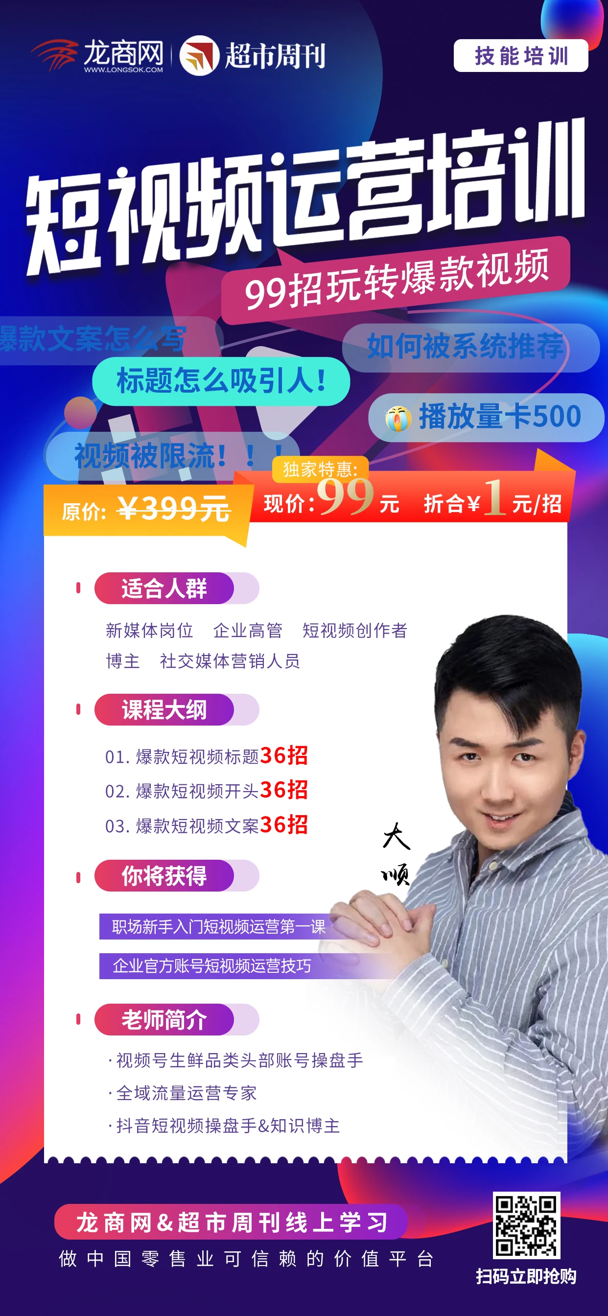 12月6-7日江苏无锡的春节选品营销实战指导、12月13-14日走进唐山郑兆丰的春节营采备战指导、12月17-19日郑州的金牌店长卓越管理研学班,以及99元畅听短视频运营培训的线上课等,12月,龙商网&超市周刊多场线上线下培训课程在陆续开展。