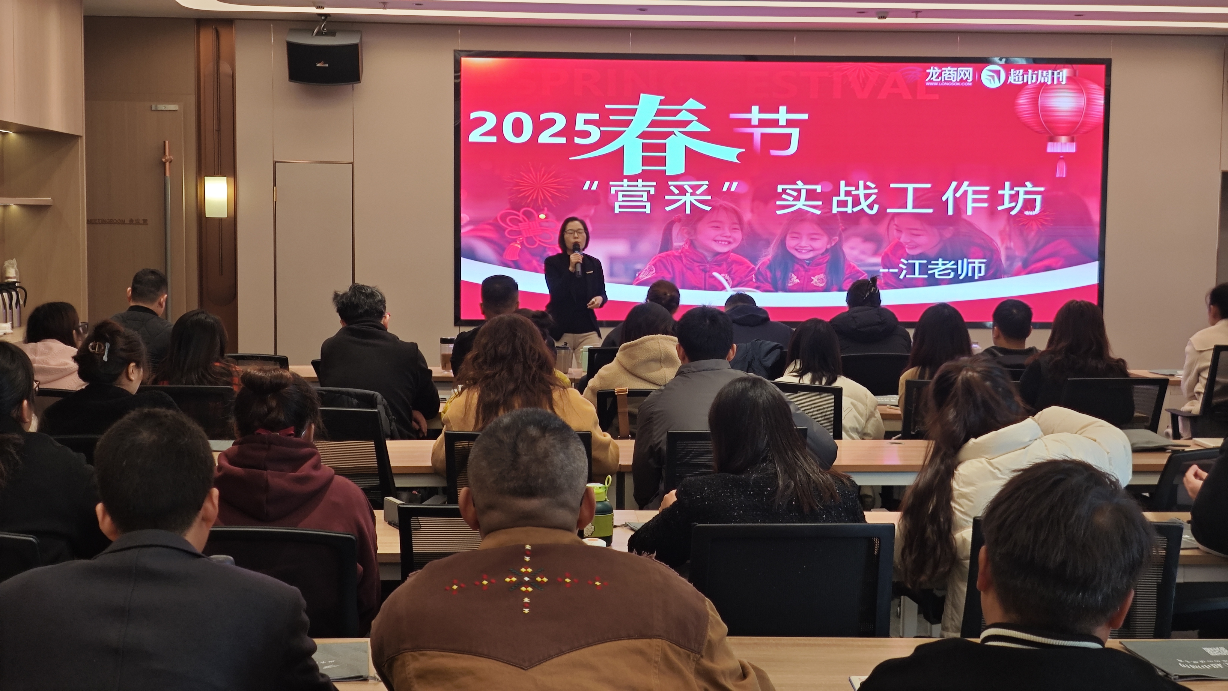 龙商网消息: 12月6日,龙商网超市周刊举办的春节选品营销实战指导培训班在江苏无锡开讲,来自全国各地多家零售企业的近100位相关采购人员参加学习。 本次课程为期两天,由资深实战老师解读2025年春节市场及消费趋势,并从选品、营销两方面,指导企业做节前...