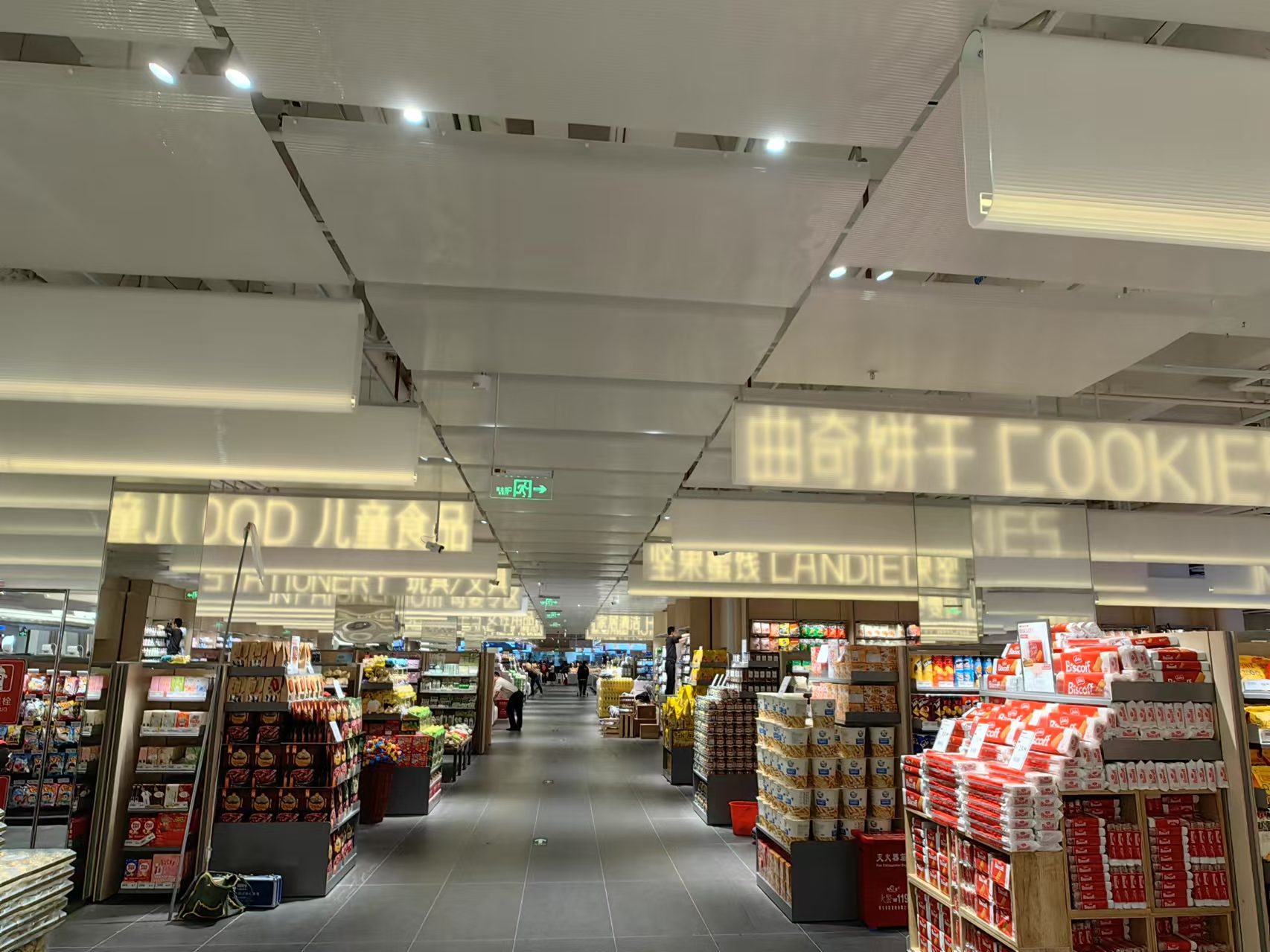 该店是广东天和商贸集团旗下全新一代超市门店,采用了颠覆性设计风格,取消强制动线规划,只为顾客提供更加舒适的购物环境,时尚年轻的设计风格,新颖的形象让到店的顾客流连忘返。