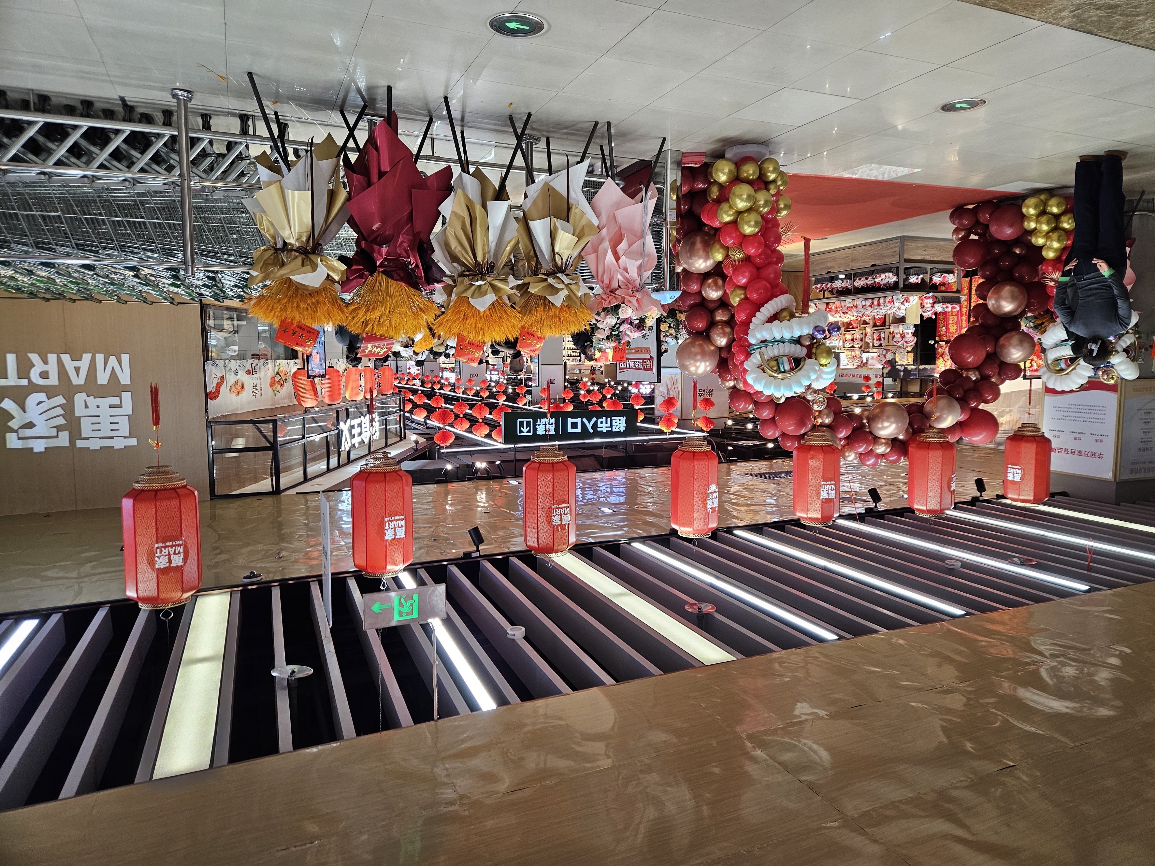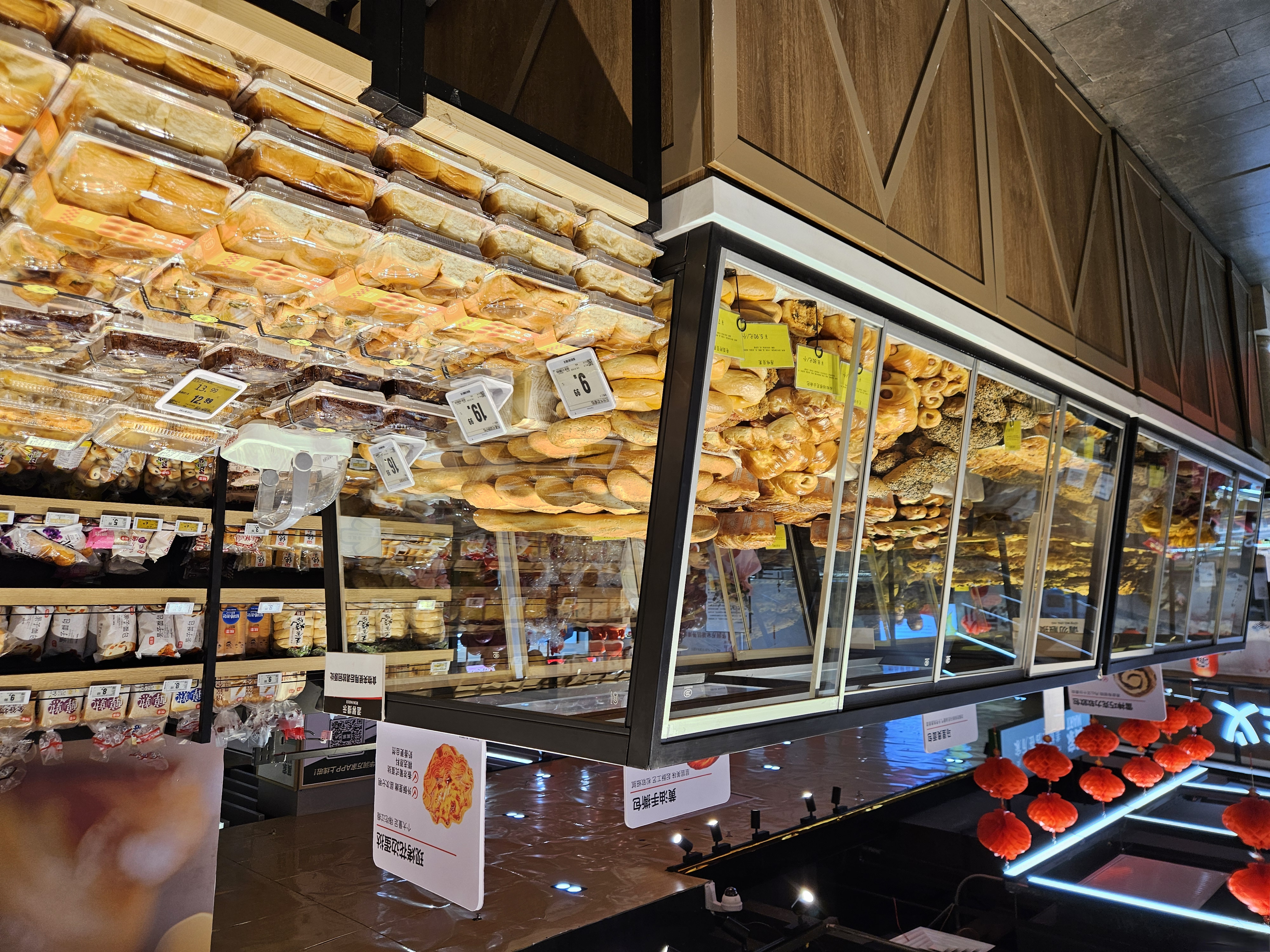 整个卖场呈"n"字形主动线,撤掉了主通道上所有堆头,加大主通道宽度达到5米;优化了空间与设计,将原来2米高的货架换成1.8米的,提高了卖场的通透性;优化了品类布局,生鲜品类占据了整个卖场主通道右侧靠墙的区域,经营占比由原来的35%增加到超过50%,从入口处的寿司、烘焙、熟食到蔬菜、水果、肉类、水产、杂粮干货等,贯穿整个卖场主动线;整体上,卖场各区域强化了结合日常生活场景打造布置的多元化购物场景,增加了“逛超市”的乐趣。