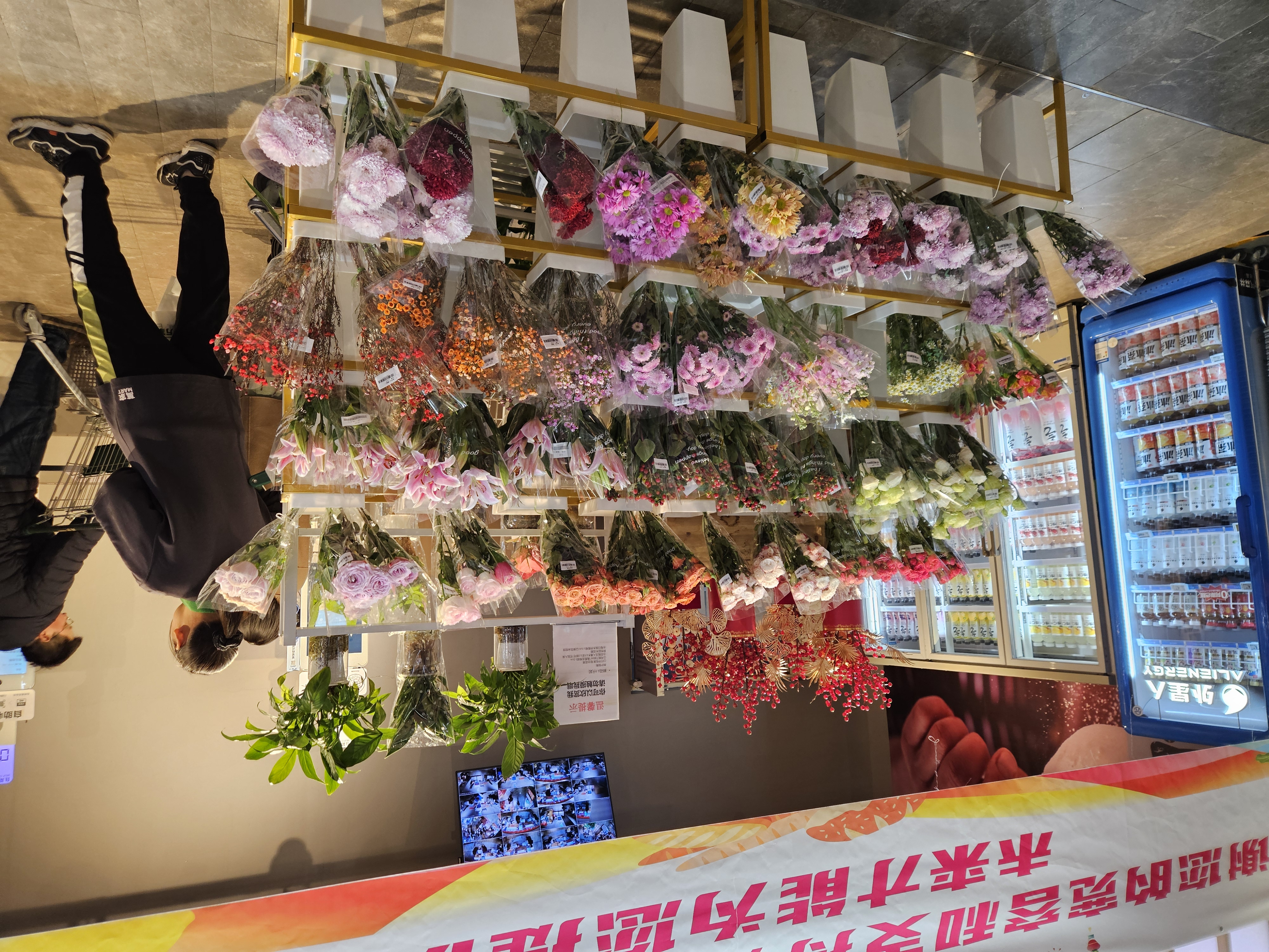 焕新门店从家庭场景出发的同时,强化了针对年轻消费群体的商品,比如在卖场入口处增加的现场制作的寿司、烘焙以及韩国炸鸡等品类,同时设置了网红酒饮、冷藏乳饮、休闲食品等满足年轻客群的需求,收银线内侧增加自营的鲜花品类。使整个卖场既有能满足年轻人追求的“新”,也有定位家庭客群一家老小都喜欢的“鲜”品味。