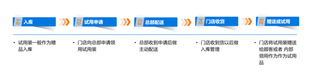 在高端化妆品自营的数字化管理中,试用装小样以独立的SKU进行管理,在小样的验收入库、试用申请、总部配送、门店收货、前台赠送等业务环节上,通过单据驱动,让企业能够详细地了解到小样到了多少个、不同的门店领取了多少、领用的小样都赠送给了谁。同时也可以由门店仓库管理验收入库,由品牌专柜完成试用申请后进行赠送或试用。在各业务环节结合数字化的工具做闭环管理,从源头上解决试用装浪费、库存精准度低的问题,同时还能有效的避免由于人为因素导致相关成本的增加。