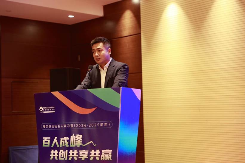 在晚上举行的欢迎晚宴及开班仪式上,中国物流与采购联合会食材供应链分会秘书长于凤龙、新和盛总裁温海涛作欢迎致词,希望大家一边学习一边交流,与各位学员嘉宾携手共进达成合作,百人成峰、共创共享共赢!