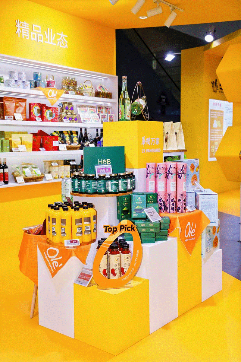华润万家展区通过主题式的分区再现消费者的购物场景,汇聚了三种不同业态的主营商品,也特别展示了焕新出发的自有品牌系列商品,“家选”、“润家”、"简约组合”、"Olé Every Day"、"Olé Original"、"Olé Leading”,秉承优选、优质、优价的三优准则,构建起全新的万家自有品牌矩阵,支持消费者的心选生活。