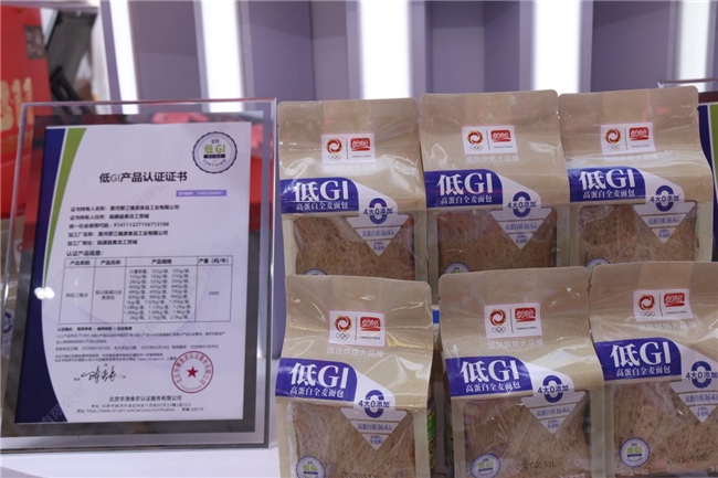 盼盼食品推出的低 GI 高蛋白全麦面包,凭借其独特的健康配方,成为此次展会的一大亮点。这款面包采用优质全麦粉制作,富含高膳食纤维,GI 值约 40,能够有效控制血糖水平,为消费者提供健康美味的主食选择。同时,它不含色素、蔗糖、防腐剂和反式脂肪酸,真正实现了健康与美味的完美结合。面包中蛋白质含量高达 16.4 克 / 100 克,为消费者提供丰富的营养支持。