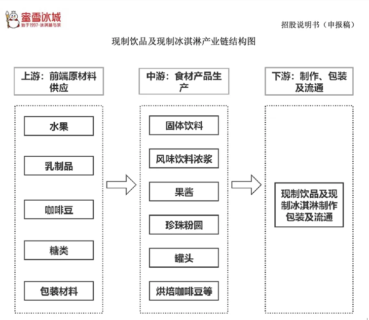 例如,蜜雪冰城的主打产品(如柠檬水、奶茶)多采用预拌原料(例如果酱、糖浆标准化配比),门店仅需完成"称量+混合+封口"三步操作,单杯制作时间可以控制在30秒内。从而解决了加盟门店过多导致门店店员操作变复杂的问题。