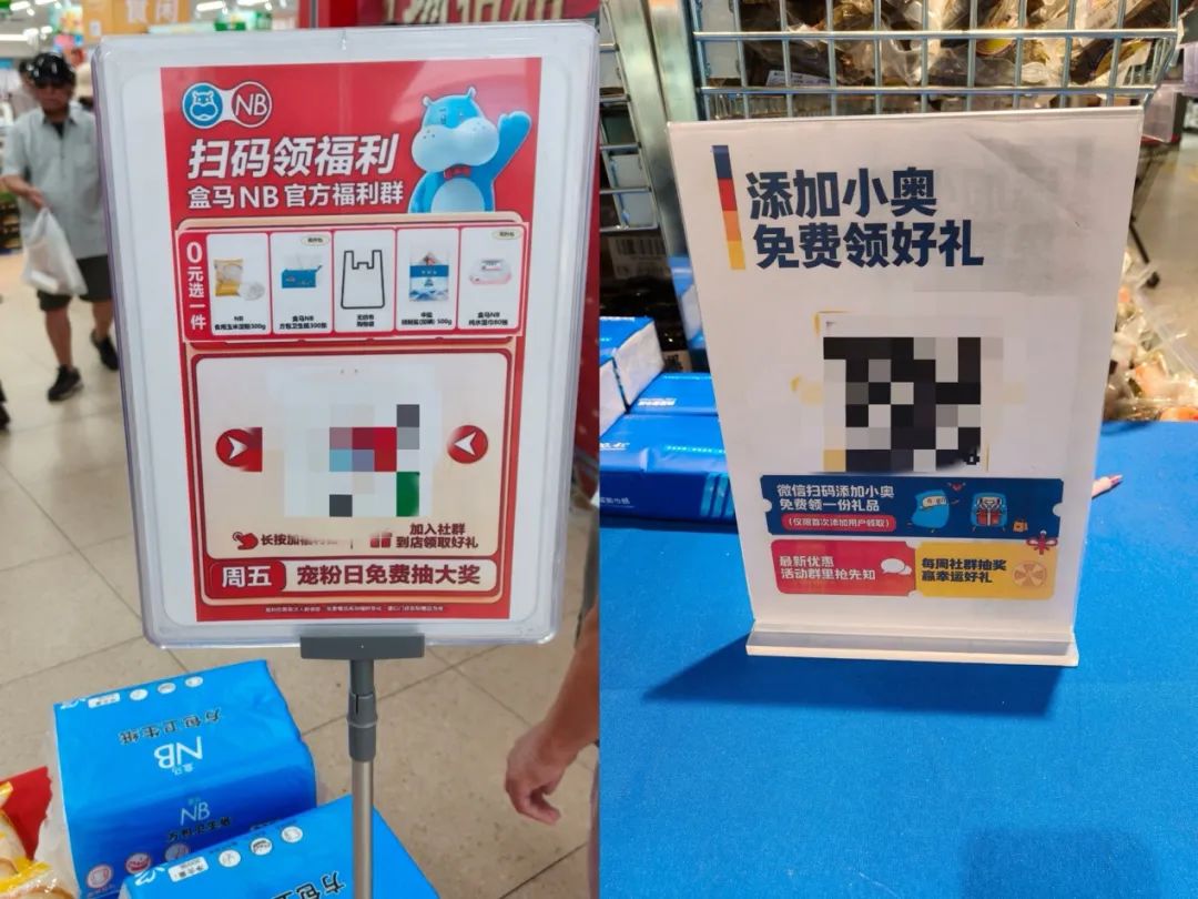 相同之处在于,盒马NB与奥乐齐都非常重视私域运营,消费者在线下添加官方客服的企业微信还会赠送礼品,加入企业微信群后还会推送门店的日常优惠福利。