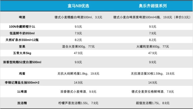 不过,部分商品不能代表全部情况,从整体来看,盒马NB和奥乐齐超值系列的自营商品价格,放眼零售业内都非常有竞争力。