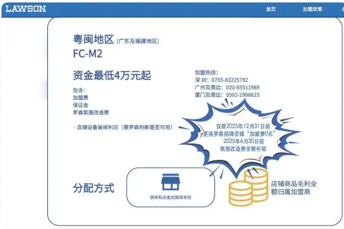 我们观察到,罗森创新推出的“罗森小站”加盟模式成为关键增长引擎。在广东、福建等地区,加盟费最低仅需4万元起,店铺面积要求降至20平方米以上,2025年内换牌甚至可享“0加盟费”特殊政策。