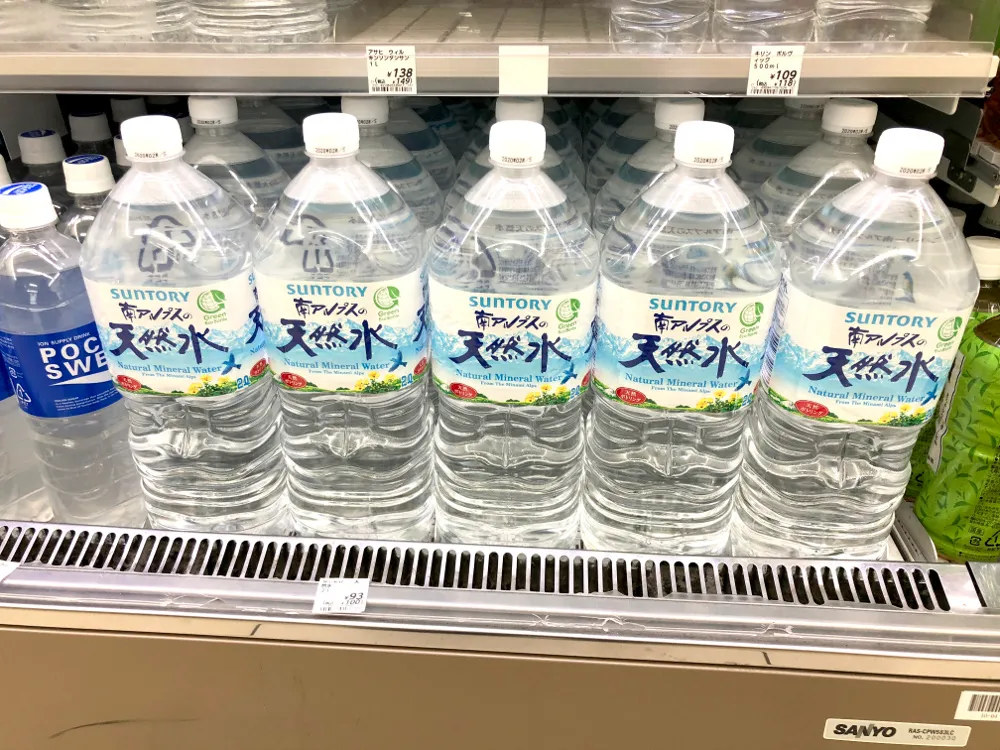 在罗森便利店,南阿尔卑斯天然水2L装的售价为含税100日元,1L的售价为含税176日元,550mL的售价为含税108日元[1];而在7-Eleven便利店,三得利天然水2L的价格为112日元,550mL为108日元,规格翻4倍,只贵了4日元[2];在便利店,2L瓶装水价格为90+日元,550mL瓶装水价格100+日元的情况非常普遍。[3]