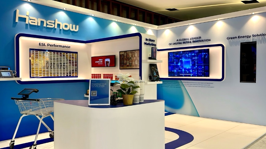 在峰会的I-Zone展区,汉朔以“Powering Your Future Store(赋能未来门店)”为主题,系统呈现了覆盖运营优化、消费体验升级、营销优化及能源管理的全场景数字化解决方案,并展示了电子价签、数字营销屏、智能购物车、数字能源系统等核心产品矩阵在门店运营效率优化、顾客服务能力升级与市场竞争力重构等方面的技术支撑体系。通过场景化演示与交流,吸引峰会嘉宾直观感受汉朔作为零售数字化转型引领者的技术创新力。