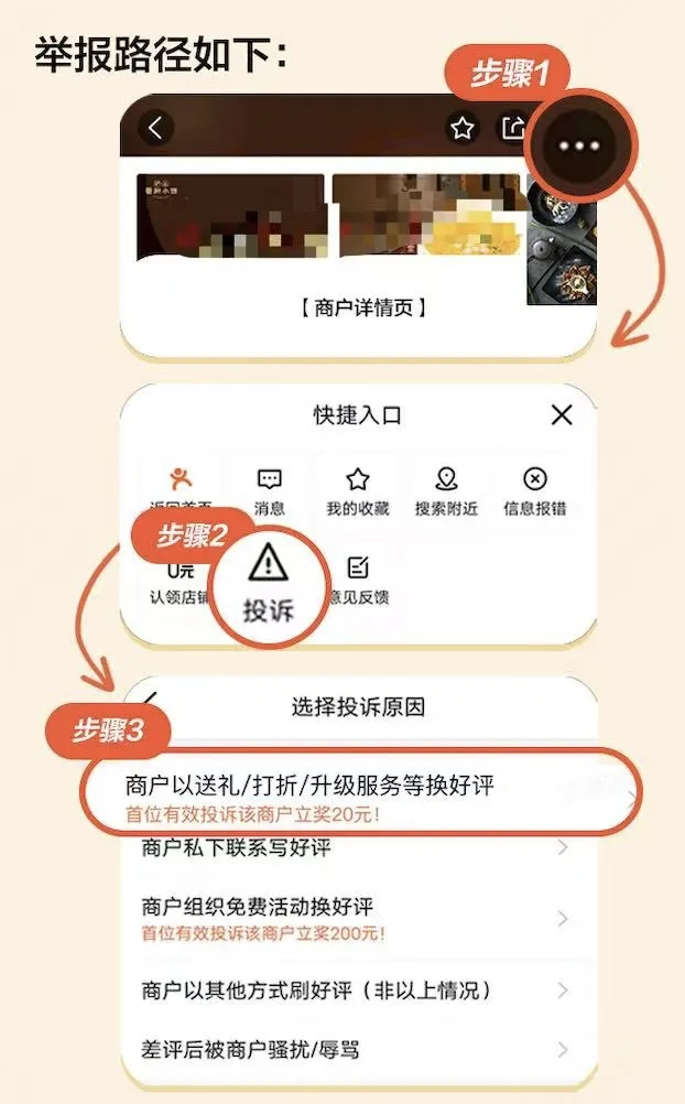 除此之外,在此次栏目改版升级前,美团还针对消费者吃饭时被要好评、写真实差评吐槽被骚扰的问题,推出了全民监督机制,开启一键投诉功能。