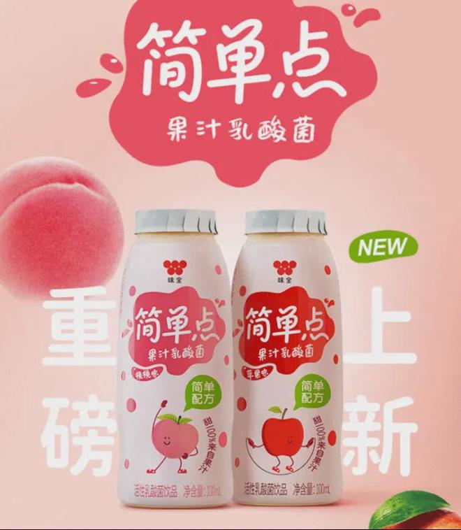 近日,味全上新「简单点」果汁乳酸菌新品。