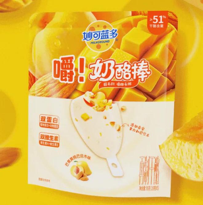 据介绍,这款奶酪棒新品干酪含量≥51%,含有软质干酪、车达干酪、奶油干酪、马斯卡彭干酪和新鲜干酪五种干酪,并添加了芒果、黄桃、杏丁三种水果果肉,总添加量超过5.5%。除此之外还添加了≥3.5%的巴旦木碎。官方称,「嚼!奶酪棒」含有牛奶蛋白和植物蛋白双重蛋白,含量分别为7.63g/100g和0.74g/100g,并且同时含有维生素A和维生素D。这款新品能满足课间休息、学习间隙、外出游玩等多种场景需求。