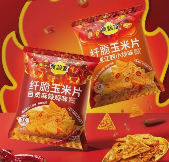 近日,食验室官宣上新纤脆玉米片爆辣新口味:自贡麻辣鸡味&香辣江西小炒味。