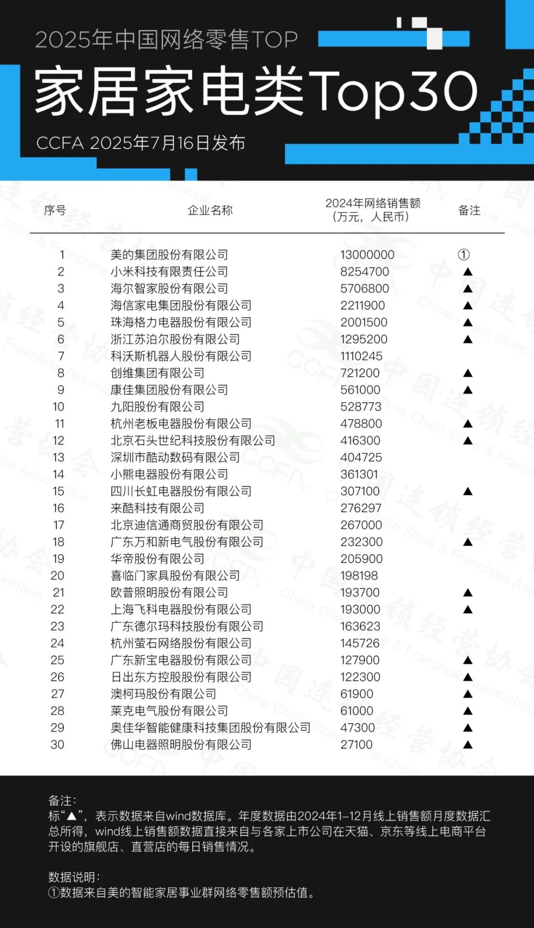 ● 家电家居类表现最“重”:Top30企业网络销售额达3968.3亿元,是体量最大的细分领域;