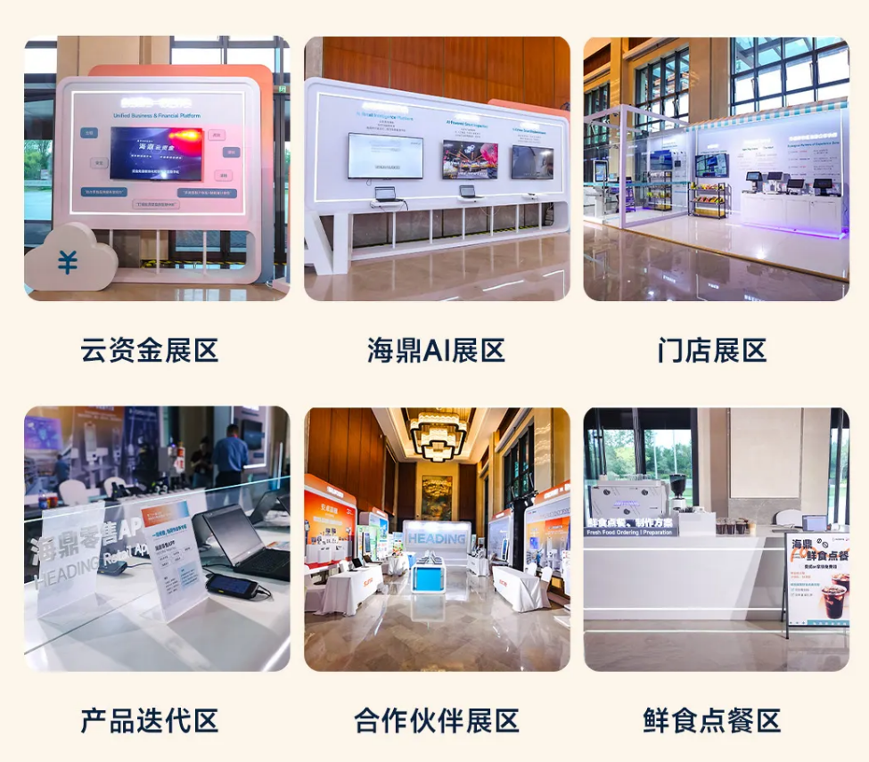 海鼎联合隆玛特、商米、快进商店、辰达物联、中科英泰和易捷通科技等一众优秀合作伙伴,精心打造了生态体验区。该区域通过软硬件深度融合的展示方式,生动呈现了数智化领域的尖端产品与解决方案。海鼎鲜食点餐、制作、无人值守、AI秤、刷掌支付、AI智能补货、AI智能巡检、AI零售智能平台等产品等悉数亮相,为与会者带来了前所未有的场景化、沉浸式体验。