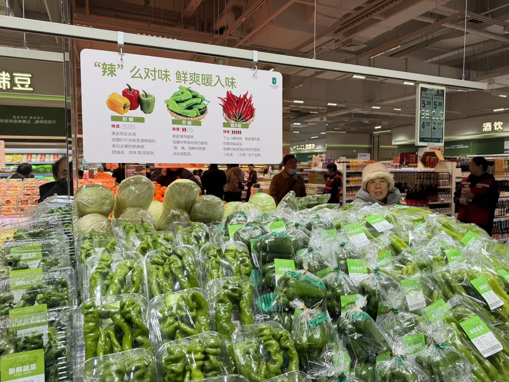 该店营业面积超5000平方米,定位中高端消费群体,精选商品SKU近8000个,主打生鲜果蔬、熟食烘焙、鲜活海鲜及优选标品,满足都市家庭对品质生活与便捷购物的双重需求。店内采用全新品牌视觉系统,以清新活力的绿色为主色调,整体空间设计更显年轻化、场景化,引入餐饮区与堂食区,为顾客提供“逛吃一体”的沉浸式消费体验。