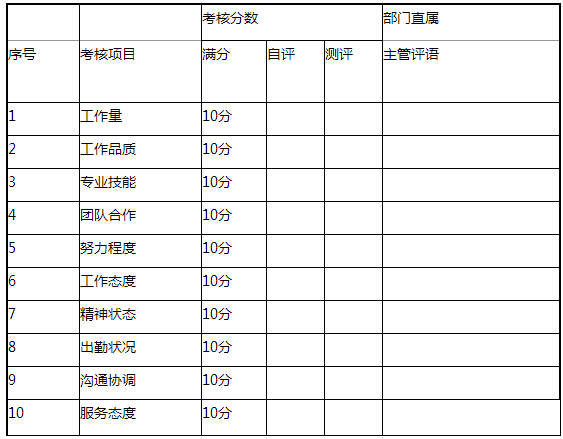 1、德,主要考核员工的思想品质和职业道德。是否诚实、守信,为人善良,是否能以企业为家,是否把企业的利益放在了重要的位置,考核员工在日常工作中是否尊重顾客,是否热爱自己的岗位,与同事的关系是否融洽,是否遵纪守法,是否维护企业的利益,是否保护顾客的合法权益,是否廉洁奉公。与其他员工的合作关系,工作态度等,这些是决定一个员工是否能认真工作,兢兢业业,圆满完成任务的最关健的考核内容。回答这些问题不是用数据来测量的,用数据也没法儿测量,而应该是根据观察,根据日常工作、生活、待人接物、办事等多方面做定性的判断。可以划分为优秀、良好、合格、一般等不同的等级。