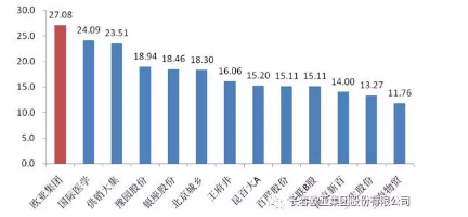 震撼:Wind数据显示,在商贸行业上市公司中,26年来欧亚集团净利润年复合增长率27.08%处于第一位。