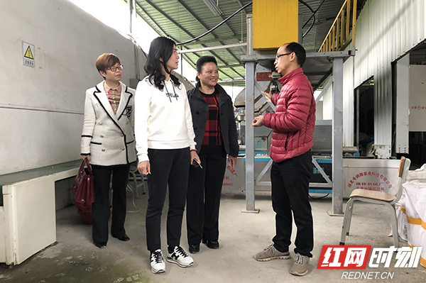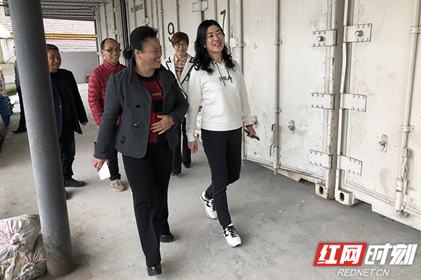 全国人大代表、湖南佳惠集团董事长李小红(右)来到五郎溪村了解冷库运行情况。