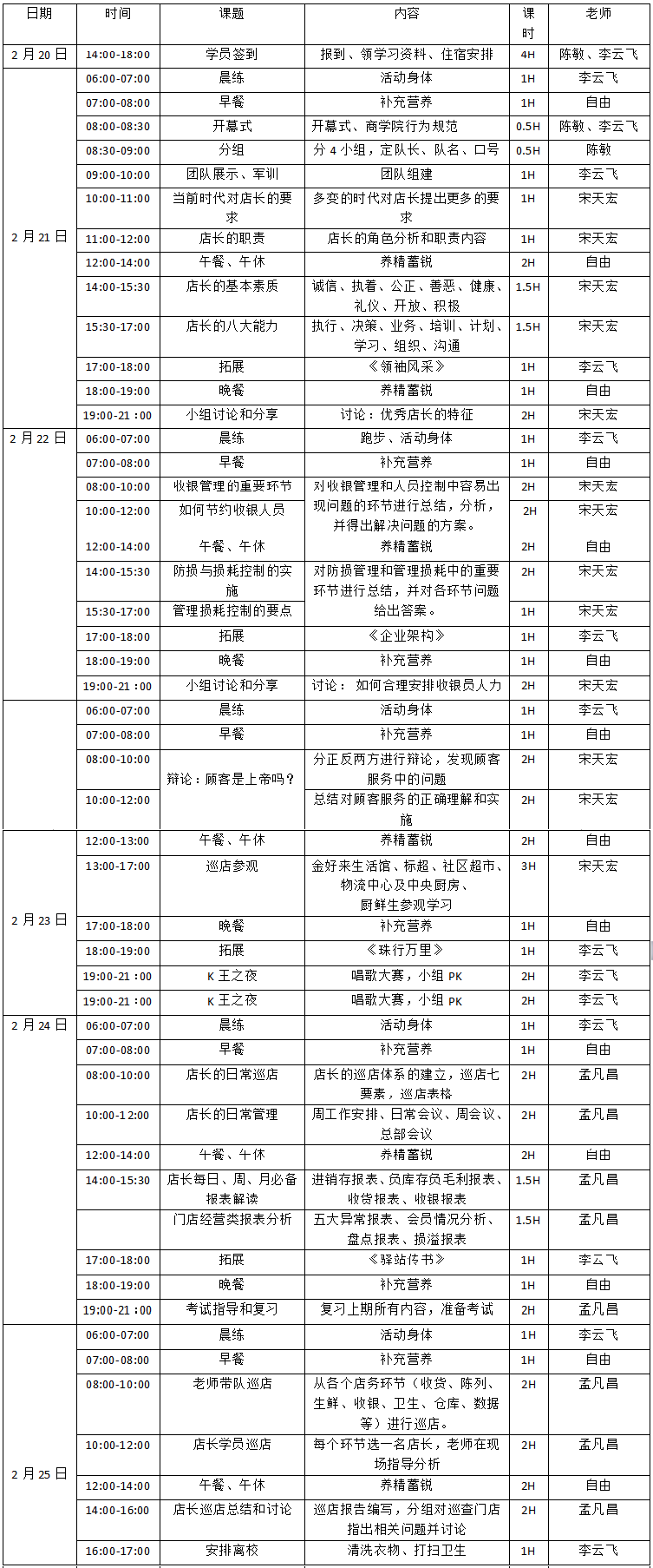 授课对象:营运总监、营运经理、店长、营运主管等相关管理人员