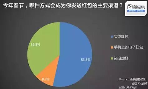 有36.8%网民依然在实体红包和微信等电子红包之间纠结,而这种纠结对于产品而言,意味着巨大的潜在市场空间。而如何争取这部分中间用户,成为了今年春节“红包大战”的主题。