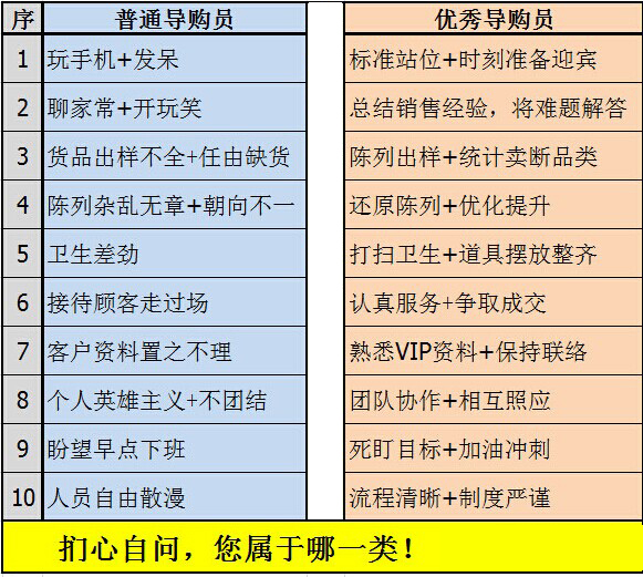 店铺的业绩的好与坏,很多时候我们都会归罪于天气、人流、产品、价格...那么,真真的病根到底在哪里呢?看完以下这个张对比图,相信你就能完全明白了!