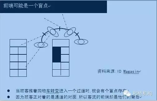 启示:通道要直、要通。留住你顾客的不是我们想当然的设置的动线,而是我们更多的站在顾客角度出发去考虑的因素。
