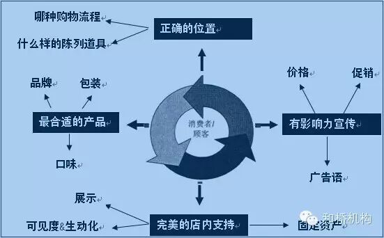 1)店内金三角——定位原则,它们在沿着三个要点的路径上:入口,收银台,店内被最频繁购买的商品周围。