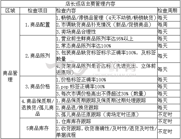 明确巡店主要管理内容