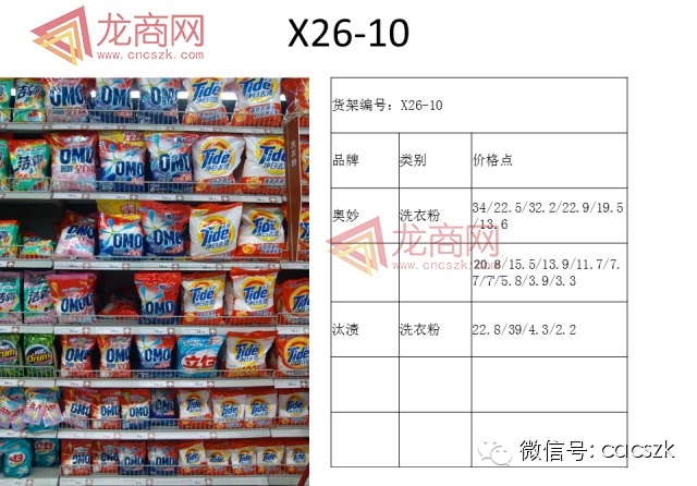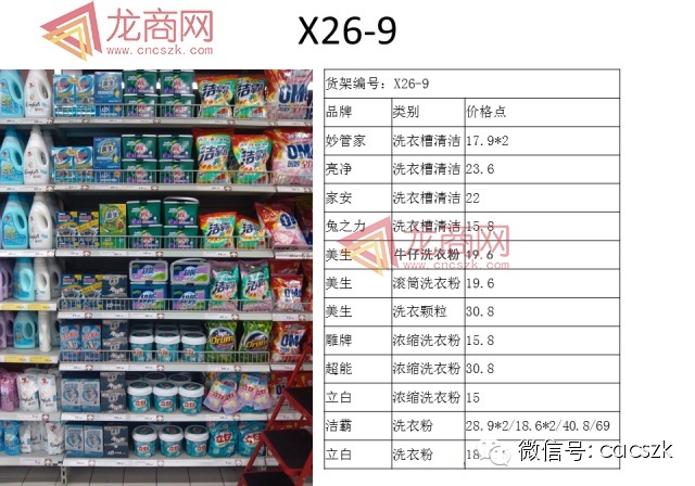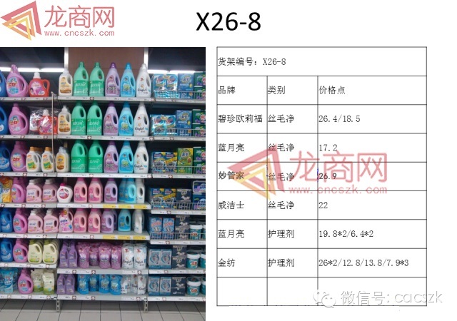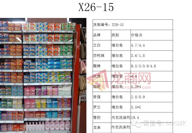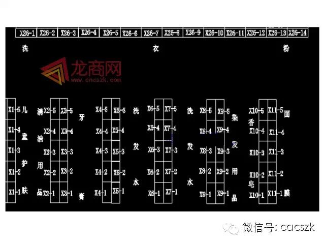 下图为该部门整体货背陈列图,编码解释:X26-1 洗化部第26条通道第1节货架,各位可以通过此图分析其商品小分类关联原则