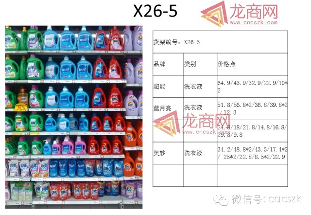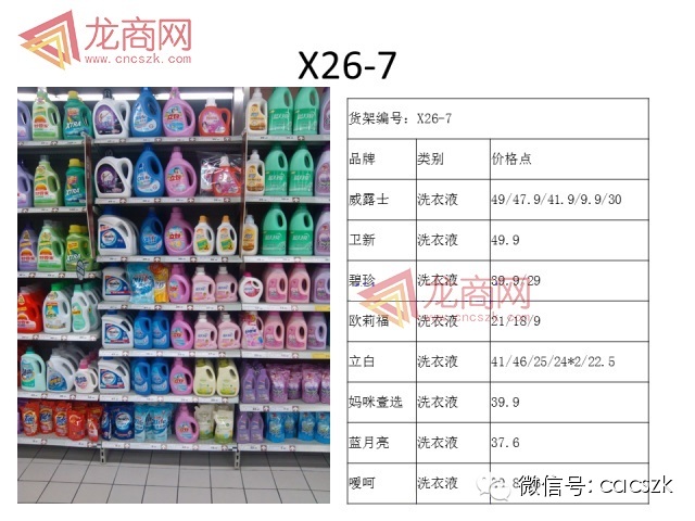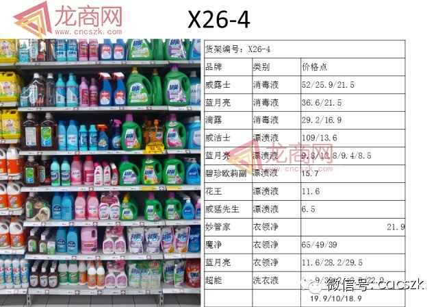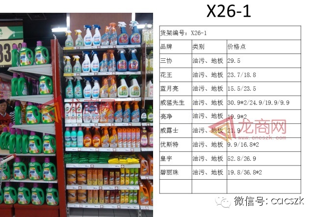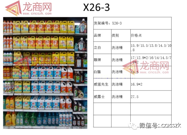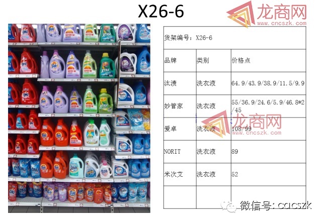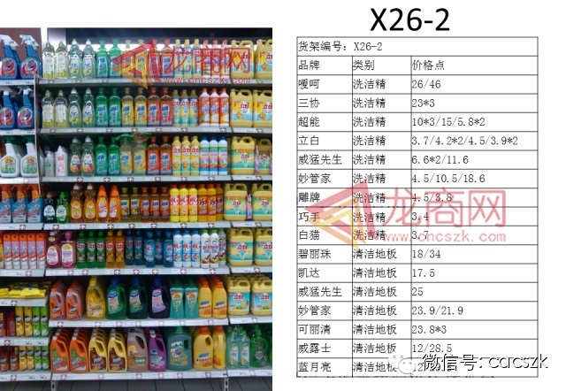《胖东来超市全品项市调报告》之家用清洁部门,下图为该部门整体货背陈列图,编码解释:X26-1 洗化部第26条通道第1节货架,各位可以通过此图分析其商品小分类关联原则。...