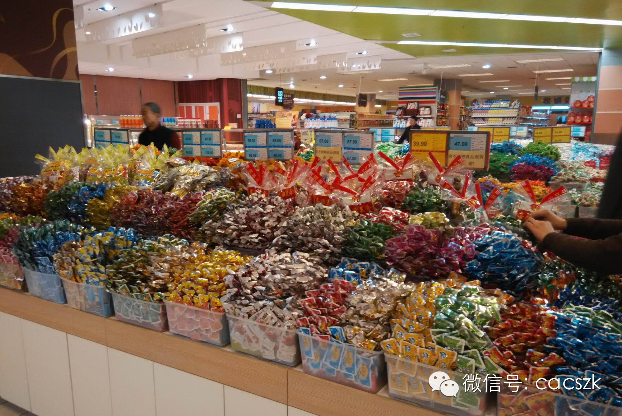 几乎每走20米就会看到一个员工在擦拭商品与货架,甚至看到一位员工在挑拣混在一起的肉眼很难辨别开来的茶叶!