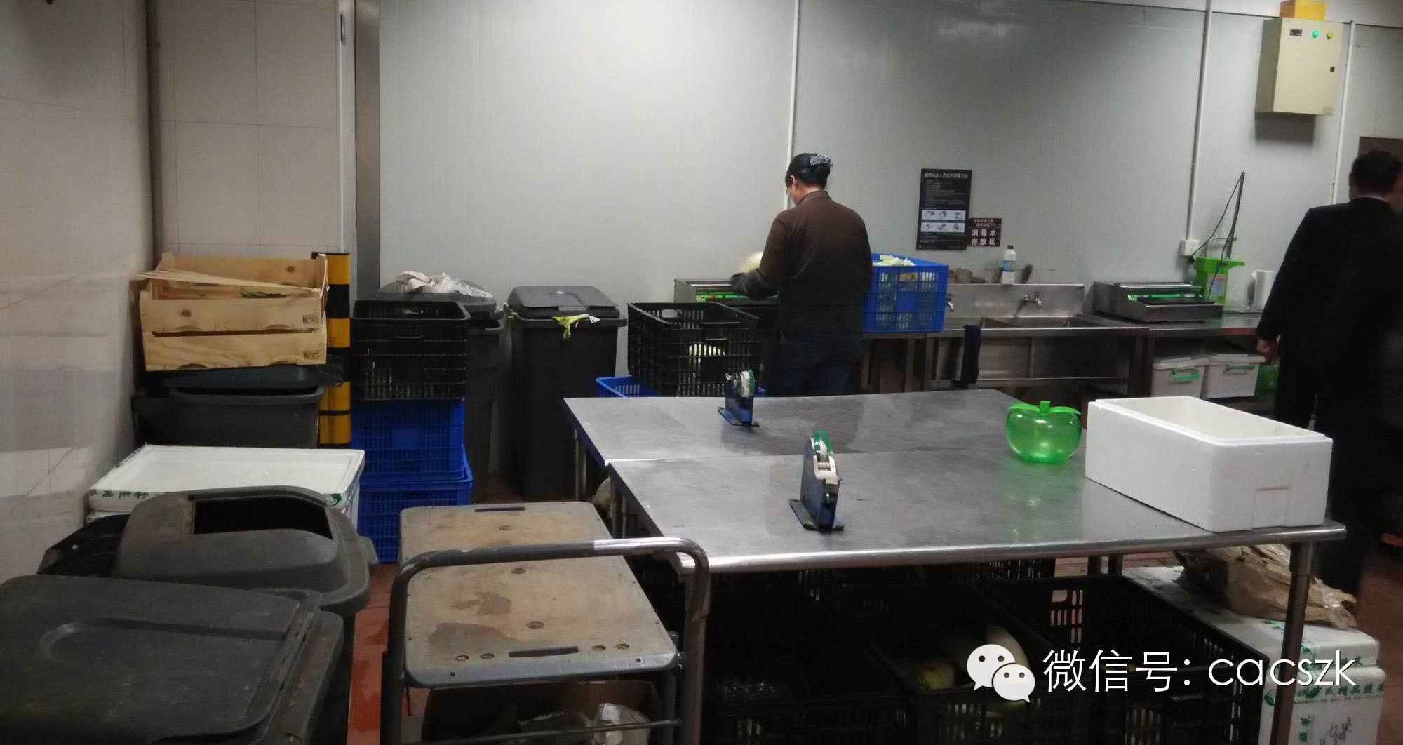 蔬果加工区的员工们严格的执行着卫生标准,按部就班的对蔬菜进行包装。