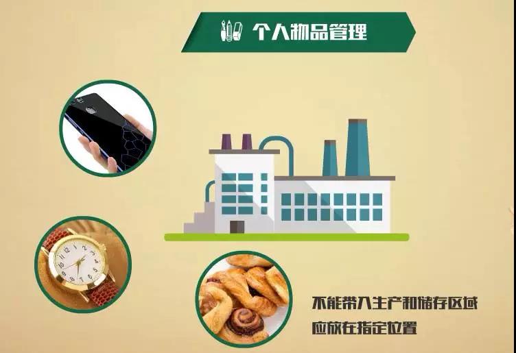 个人食品和物品不能带入生产和储存区域,而应放在指定位置。人员饮食和吸烟也应限制在指定区域内。食物和饮料不应带入更衣室,因为这可能吸引虫害并造成其他交叉污染问题,如过敏原。
