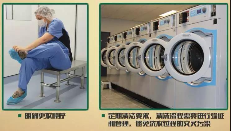 应明确更衣顺序,定期清洁要求;清洗流程需要进行验证和管理,避免洗衣过程出现交叉污染。